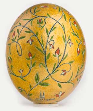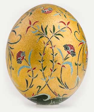În Antichitate, ouăle de struț decorate erau considerate un dar de lux, provenind din contexte funerare ale elitelor. Înfrumusețate în diferite moduri, prin zgrafitare, pictate sau decorate cu metale prețioase, acestea au fost inițial descoperite în morminte din Mesopotamia și apoi de-a lungul Mediteranei (Grecia, Italia, Spania). Ouă de struț pictate cu ocru, datând de peste 5000 de ani, se află în colecțiile marilor muzee din lume.
